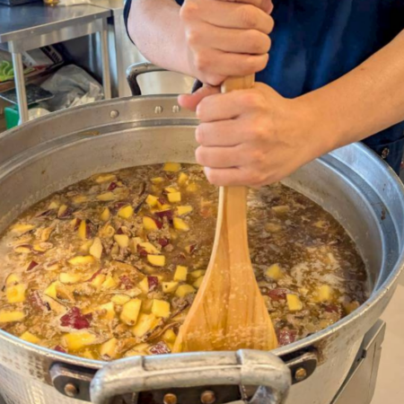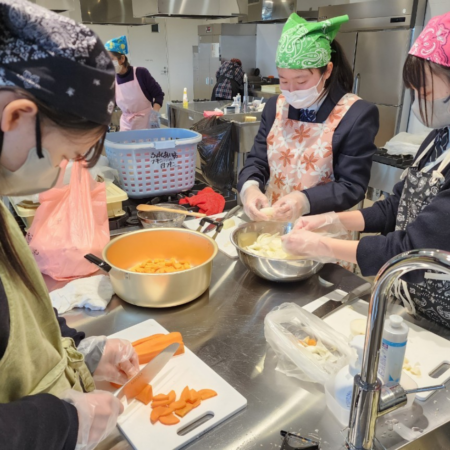 高校生と炊き出し準備